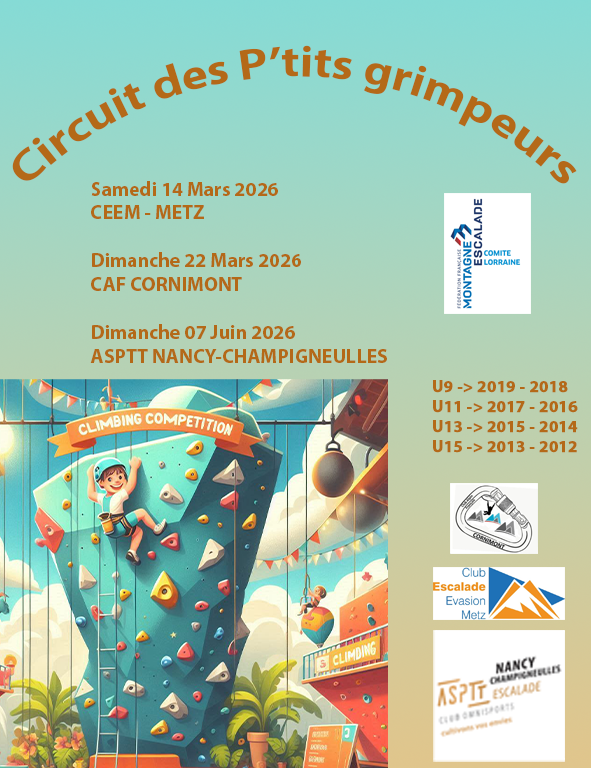 Voici les dates du Circuit des P’tits Grimpeurs destinés aux enfants nés entre 2012 et 2019 :